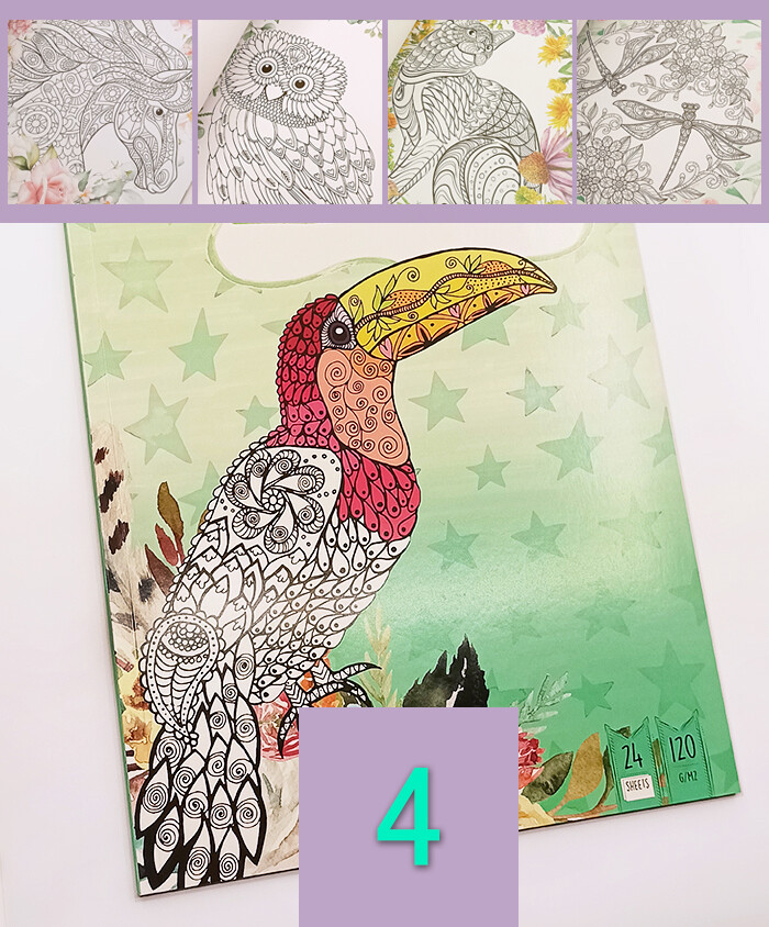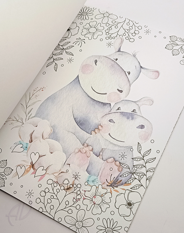 Do kolorowania kredkami ołówkowymi lub markerami akwarelowymi.
