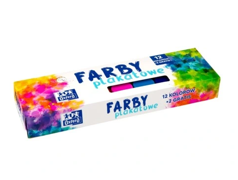 Farby plakatowe Oxford doskonale sprawdzą się w każdej szkole, przedszkolu czy pracowni artystycznej. Poza intensywnymi kolorami i gęstą konstystencją Oxford stawia na wysoką jakość opakowań. W kubeczkach zastosowano pełny gwint, dzięki czemu wieczko zakręca się szczelnie, bez przekręcenia. Farby nie wysychają i można ich używać jeszcze dłużej bez utraty jakości. We wnętrzu opakowania umieszczono wskazówki mieszania kolorów