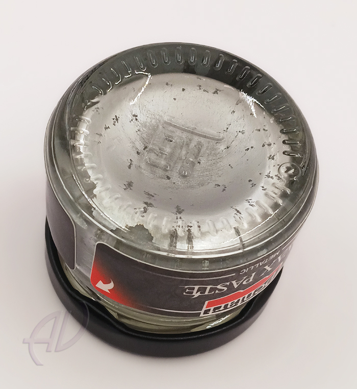 Pasta woskowa, z metalicznym połyskiem, nadaje jasnym powierzchniom żywy, metaliczny połysk, z woskiem pszczelim i olejkiem pomarańczowym.